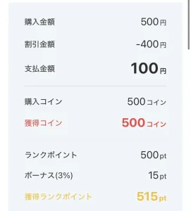 ↓初回登録の際に、招待コードを入れていたため、500コインに加え、300コインゲット!合計で800コインあります。