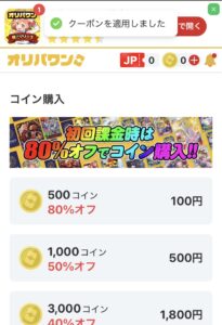 オリパワンは従量課金制になっています(使う分だけコインを購入)。